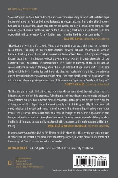 The concept of the "work of art" is paradoxically both widely used and often unexamined. This book re-evaluates the scope of "work," "art," and "the aesthetic" from the viewpoint of deconstructionist philosophy and suggests that Derrida's analyses resolve some central questions in the discourses of contemporary visual arts.