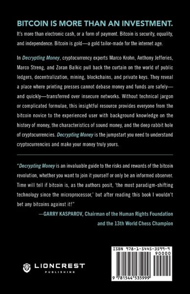 Bitcoin is more than an investment. It's more than electronic cash, or a form of payment. Bitcoin is security, equality, and independence. Bitcoin is gold-a gold tailor-made for the internet age. In Decrypting Money, cryptocurrency experts Marco Krohn, Anthony Jefferies, Marco Streng, and Zoran Balkic pull back the curtain on the world of public ledgers, decentralization, mining, blockchains, and private keys. They reveal a place where printing presses cannot debase money and funds are safely-and quickly-transferred over insecure networks. Without technical jargon or complicated formulae, this insightful resource provides everyone from the bitcoin novice to the experienced user with background knowledge on the history of money, the characteristics of sound money, and the deep rabbit hole of cryptocurrencies. Decrypting Money is the jumpstart you need to understand cryptocurrencies and make your money truly yours.