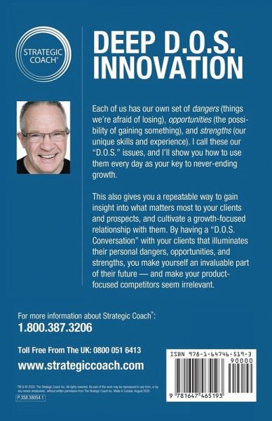 Each of us has our own set of dangers (things we're afraid of losing), opportunities (the possibility of gaining something), and strengths (our unique skills and experience). I call these our "D.O.S." issues, and I'll show you how to use them every day as your key to never-ending growth. This also gives you a repeatable way to gain insight into what matters most to your clients and prospects, and cultivate a growth-focused relationship with them. By having a "D.O.S. Conversation" with your clients that illuminates their personal dangers, opportunities, and strengths, you make yourself an invaluable part of their future - and make your product-focused competitors seem irrelevant.