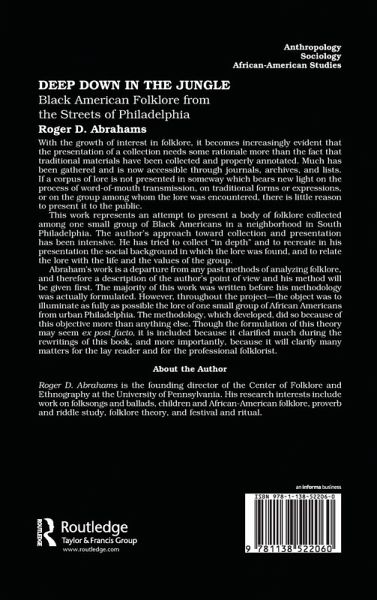 This work represents an attempt to present a body of folklore collected among one small group of Black Americans in a neighborhood in South Philadelphia. The author's approach toward collection and presentation has been intensive. He has tried to collect "in depth," and to recreate in his presentation the social background in which the lore was found, and to relate the lore with the life and the values of the group.