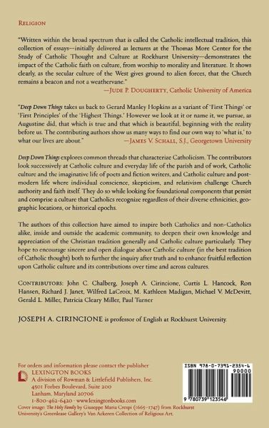 Deep Down Things explores common threads that characterize Catholicism. The contributors look successively at Catholic culture and everyday life, Catholic culture and the imaginative life, and Catholic culture and postmodern life-where individual conscience, skepticism, and relativism challenge Church authority and faith itself. They do so looking for foundational components that persist and comprise a culture that Catholics recognize regardless of their diverse ethnicity, geographic location, or historical epoch.