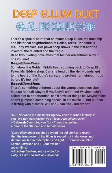 There's a special spirit that animates Deep Ellum, the most hip and historical neighborhood of Dallas, Texas. Her name is Ms. Eddy Weekes. Her pawn shop draws in the lost and the lovelorn, the talented and the tragic. She'll lend a hand when she can, but Eddy believes in free will. As she puts it, "Everybody has the right to make their own hideous life-altering mistakes." Still, if supernatural forces threaten her turf, she'll take an interest. And if you ask her for help? Well, as the sign outside her pawnshop says, she's there when you need her. Deep Ellum Pawn What's a pawnshop owner to do? The Golden Fiddle is back again. It's left a swath of broken dreams and shattered lives in its wake, and that fearsome pack of Hell Hounds won't be far behind. Somehow the fiddle keeps returning to Deep Ellum Pawn, Ms. Eddy's shop, where music, magic, and legends intertwine in the historic Dallas, Texas neighborhood of Deep Ellum. Roots grow deep there, and things long buried have a way of showing up again. Before Ms. Eddy can end the curse's destruction for good, she must unravel the fiddle's secret. Can she fend off the Hell Hounds, get to the heart of the Golden Fiddle's curse, and protect her neighborhood before it's too late? Will she have the tools she needs, when it's time to fight an epic battle with an old, old rival? Or will the fiddle's destructive curse prevail? Deep Ellum Blues Free will is a rule she doesn't break. As the genius loci of Deep Ellum, Ms. Eddy Weeks is a hands-off goddess who won't micro-manage human affairs. She'd rather sit on the sidelines and enjoy the show. Her motto? "People have the right to make their own hideous, life-altering mistakes." But there's something different about the young blues musician Mudcat Randall. Maybe if her old friend Waylon hadn't called him to her attention, she'd have let things be. Maybe if she hadn't glimpsed something special in his music ... But Mudcat is flirting with disaster. Eddy's old adversary wants him to sign a tempting management contract, and there are deadly strings attached. When a third force enters the fray, everything Mudcat has ever prayed for is suddenly on the line, and Eddy knows the game is rigged against him. Can Eddy break through to the headstrong musician? Or will an old and tragic story make Deep Ellum sing a new kind of blues?