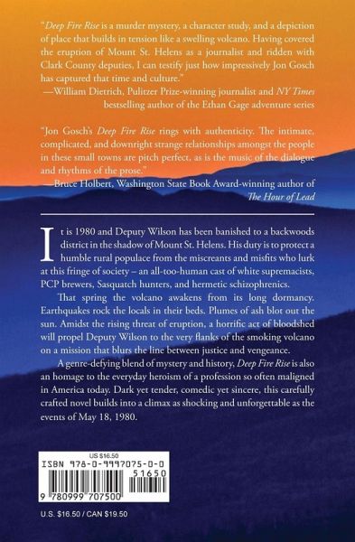 2019 Spur Award Finalist for Best Western Contemporary Novel It is 1980 and Deputy Wilson has been banished to a backwoods district in the shadow of Mount St. Helens. His duty is to protect a humble rural populace from the miscreants and misfits who lurk at this fringe of society - an all-too-human cast of white supremacists, PCP brewers, Sasquatch hunters, and hermetic schizophrenics. That spring the volcano awakens from its long dormancy. Earthquakes rock the locals in their beds. Plumes of ash blot out the sun. Amidst the rising threat of eruption, a horrific act of bloodshed will propel Deputy Wilson to the very flanks of the smoking volcano on a mission that blurs the line between justice and vengeance. A genre-defying blend of mystery and history, Deep Fire Rise is also an homage to the everyday heroism of a profession so often maligned in America today. Dark yet tender, comedic yet sincere, this carefully crafted novel builds into a climax as shocking and unforgettable as the events of May 18, 1980.