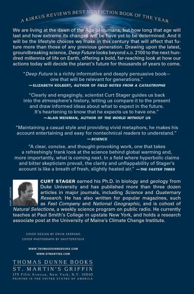 A Kirkus Reviews Best Nonfiction of 2011 title A bold, far-reaching look at how our actions will decide the planet's future for millennia to come. Imagine a planet where North American and Eurasian navies are squaring off over shipping lanes through an acidified, ice-free Arctic. Centuries later, their northern descendants retreat southward as the recovering sea freezes over again. And later still, future nations plan how to avert an approaching Ice Age... by burning what remains of our fossil fuels. These are just a few of the events that are likely to befall Earth and human civilization in the next 100,000 years. And it will be the choices we make in this century that will affect that future more than those of any previous generation. We are living at the dawn of the Age of Humans; the only question is how long that age will last. Few of us have yet asked, "What happens after global warming?" Drawing upon the latest, groundbreaking works of a handful of climate visionaries, Curt Stager's Deep Future helps us look beyond 2100 a.d. to the next hundred millennia of life on Earth.