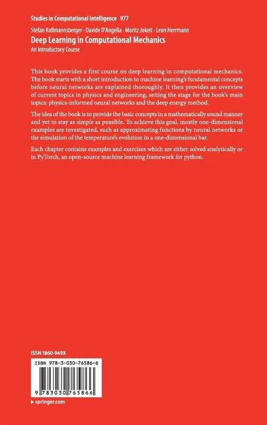 This book provides a first course on deep learning in computational mechanics. The book starts with a short introduction to machine learning's fundamental concepts before neural networks are explained thoroughly. It then provides an overview of current topics in physics and engineering, setting the stage for the book's main topics: physics-informed neural networks and the deep energy method. The idea of the book is to provide the basic concepts in a mathematically sound manner and yet to stay as simple as possible. To achieve this goal, mostly one-dimensional examples are investigated, such…mehr