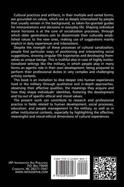 Cultural practices and artifacts, in their multiple and varied forms, are grounded on values, which are so deeply internalized by people that usually remain in the background, as taken-for-granted guides for interpretations and decisions in everyday life. Shaping individual moral horizons is at the core of socialization processes, through which older generations aim to disseminate their culturally established values to the new ones, making use of suggestions mainly implicit in daily experiences and interactions. Despite the strength of these processes of cultural canalization, people find particular ways of positioning and interpreting social suggestions, drawing singular life trajectories and developing themselves as unique beings. This is truthful also in case of highly institutionalized settings like the military, in which people play in many forms an agentic role in their own development, being prepared to perform their professional duties in very complex and challenging activity contexts. This book is an invitation to dive deeper into human experiences lived in the military through qualitative and in-depth approaches, observing their affective qualities, the meanings they acquire and how they shape individuals' identities, fostering the development and try-out of specific ethical and moral values. The present work can contribute to research and professional practice in fields related to human development, social processes, education and people management in the military, as well as in other institutional contexts, especially by highlighting the affective, meaningful and moral-ethical dimensions of cultural experiences.