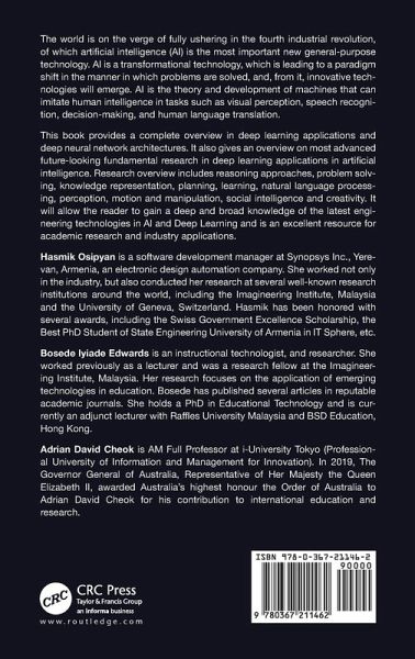 The world is on the verge of fully ushering in the fourth industrial revolution, of which artificial intelligence (AI) is the most important new general-purpose technology. Like the steam engine that led to the widespread commercial use of driving machineries in the industries during the first industrial revolution; the internal combustion engine that gave rise to cars, trucks, and airplanes; electricity that caused the second industrial revolution through the discovery of direct and alternating current; and the Internet, which led to the emergence of the information age, AI is a transformational technology. It will cause a paradigm shift in the way's problems are solved in every aspect of our lives, and, from it, innovative technologies will emerge. AI is the theory and development of machines that can imitate human intelligence in tasks such as visual perception, speech recognition, decision-making, and human language translation. This book provides a complete overview on the deep learning applications and deep neural network architectures. It also gives an overview on most advanced future-looking fundamental research in deep learning application in artificial intelligence. Research overview includes reasoning approaches, problem solving, knowledge representation, planning, learning, natural language processing, perception, motion and manipulation, social intelligence and creativity. It will allow the reader to gain a deep and broad knowledge of the latest engineering technologies of AI and Deep Learning and is an excellent resource for academic research and industry applications.