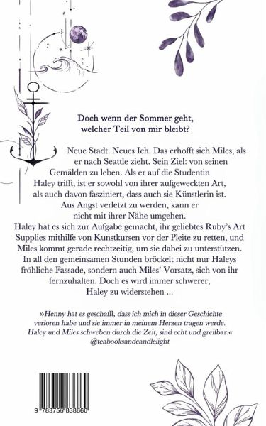 Doch wenn der Sommer geht, welcher Teil von mir bleibt?Neue Stadt. Neues Ich. Das erhofft sich Miles, als er nach Seattle zieht. Sein Ziel: von seinen Gemälden zu leben. Als er auf die Studentin Haley trifft, ist er sowohl von ihrer aufgeweckten Art, als auch davon fasziniert, dass auch sie Künstlerin ist. Aus Angst, verletzt zu werden, kann er nicht mit ihrer Nähe umgehen.Haley hat es sich zur Aufgabe gemacht, ihr geliebtes Ruby's Art Supplies mithilfe von Kunstkursen vor der Pleite zu retten, und Miles kommt gerade rechtzeitig, um sie dabei zu unterstützen. In all den gemeinsamen Stunden bröckelt nicht nur Haleys fröhliche Fassade, sondern auch Miles' Vorsatz, sich von ihr fernzuhalten. Doch es wird immer schwerer, Haley zu widerstehen...