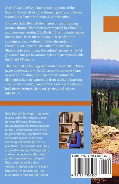 Deep Roots in a Dry Place presents plants of the Sonoran Desert of Arizona through poetry and images created in a dynamic human-AI conversation. Join poet Sally Bennett Boyington on an intriguing journey through the desert accompanied by ChatGPT and image-generating AIs. Each of the illustrated pages that resulted from this curiosity-driven adventure contains a poem written by either the author or ChatGPT, set opposite each other for comparison. Photographs accompany the author's poems, while AI-generated images in various styles are juxtaposed with the ChatGPT poems. The fusion of technology and human creativity in these pages showcases how far AI has come in recent years, as well as revealing the nuances that continue to distinguish human expression from machine learning. Deep Roots in a Dry Place offers readers a fascinating holistic experience where art, poetry, and science intertwine.
