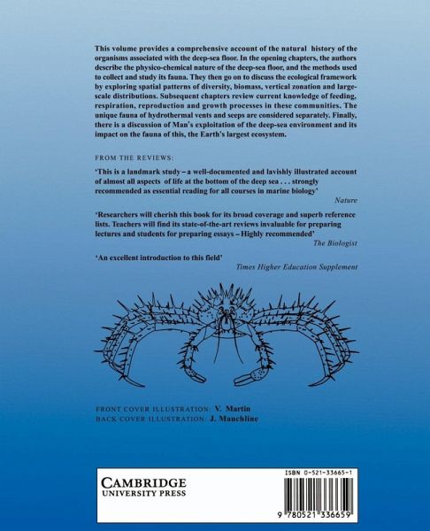 This timely volume provides a comprehensive account of the natural history of the organisms associated with the deep-sea floor and examines their relationship with this inhospitable environment--perhaps the most remote and least accessible location on the planet. The authors begin by describing the physical and chemical nature of the deep-sea floor and the methods used to collect and study its fauna. Then they discuss the ecology of the deep sea by exploring spatial patterns, diversity, biomass, vertical zonation, and large-scale distribution of organisms. Subsequent chapters review current knowledge of feeding, respiration, reproduction, and growth processes in these communities. The unique fauna of hypothermal vents and seeps are considered separately. Finally, there is a pertinent discussion of human exploitation of deep-sea resources and potential use of this environment for waste disposal.