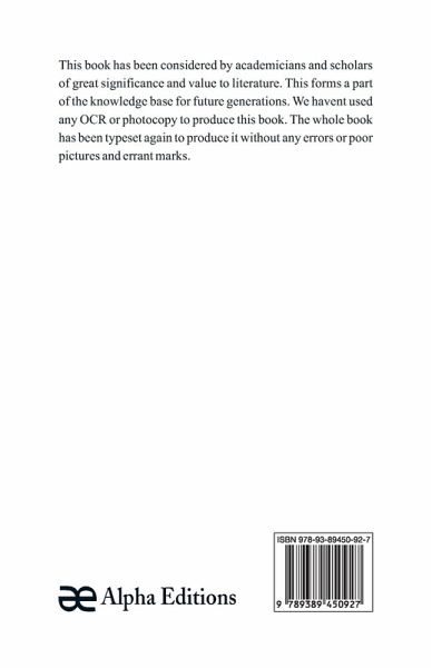 This book has been considered by academicians and scholars of great significance and value to literature. This forms a part of the knowledge base for future generations. We have represented this book in the same form as it was first published. Hence any marks seen are left intentionally to preserve its true nature.