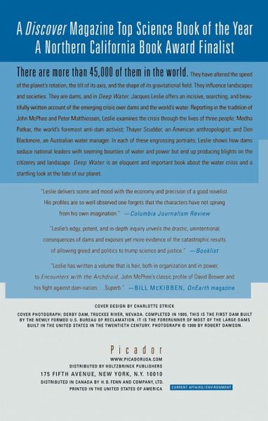 A Discover Magazine Top Science Book of the Year A Northern California Book Award Finalist There are more than 45,000 of them in the world. They have altered the speed of the planet's rotation, the tilt of its axis, and the shape of its gravitational field. They influence landscapes and societies. They are dams, and in Deep Water, Jacques Leslie offers an incisive, searching, and beautifully written account of the emerging crisis over dams and the world's water. Reporting in the tradition of John McPhee and Peter Matthiessen, Leslie examines the crisis through the lives of three people: Medha Patkar, the world's foremost anti-dam activist; Thayer Scudder, an American anthropologist; and Don Blackmore, an Australian water manager. In each of these engrossing portraits, Leslie shows how dams seduce national leaders with seeming bounties of water and power but end up producing blights on the citizenry and landscape. Deep Water is an eloquent and important book about the water crisis and a startling look at the fate of our planet.
