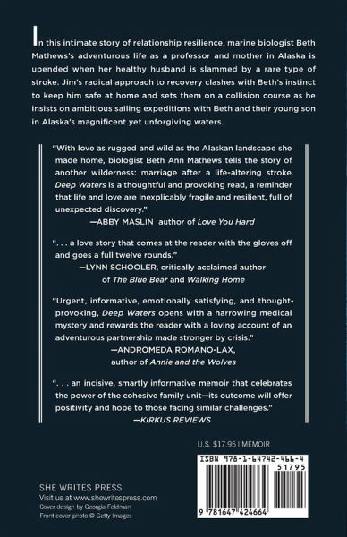 An intimate, uplifting story of a courageous marine biologist's journey from the instant her healthy husband suffers a stroke, through Beth's trials and tender moments as his medical advocate and conflicts during his recovery when her instinct to protect him from risk collides with his need for wilderness sailing expeditions with his family in Alaska's magnificent yet unforgiving waters.