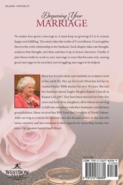 No matter how good a marriage is, it must keep on growing if it is to remain happy and fulfilling. This study takes the truths of I Corinthians 13 and applies them to the wife’s relationship to her husband. Each chapter takes one thought, analyzes that thought, and then matches it up to Jesus’s character. Finally, it puts those truths to work in your marriage in ways that become real, causing good marriages to be enriched and struggling marriages to be helped.