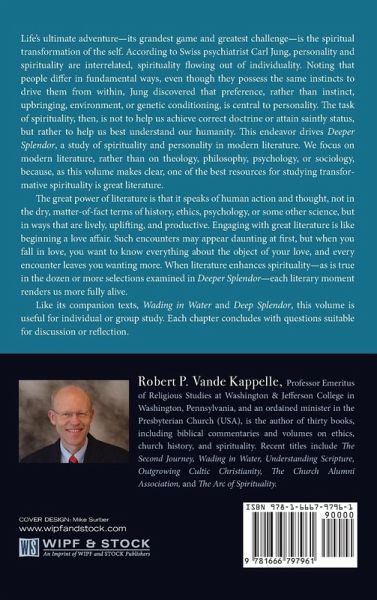 Life's ultimate adventure--its grandest game and greatest challenge--is the spiritual transformation of the self. According to Swiss psychiatrist Carl Jung, personality and spirituality are interrelated, spirituality flowing out of individuality. Noting that people differ in fundamental ways, even though they possess the same instincts to drive them from within, Jung discovered that preference, rather than instinct, upbringing, environment, or genetic conditioning, is central to personality. The task of spirituality, then, is not to help us achieve correct doctrine or attain saintly status, but rather to help us best understand our humanity. This endeavor drives Deeper Splendor, a study of spirituality and personality in modern literature. We focus on modern literature, rather than on theology, philosophy, psychology, or sociology, because, as this volume makes clear, one of the best resources for studying transformative spirituality is great literature. The great power of literature is that it speaks of human action and thought, not in the dry, matter-of-fact terms of history, ethics, psychology, or some other science, but in ways that are lively, uplifting, and productive. Engaging with great literature is like beginning a love affair. Such encounters may appear daunting at first, but when you fall in love, you want to know everything about the object of your love, and every encounter leaves you wanting more. When literature enhances spirituality--as is true in the dozen or more selections examined in Deeper Splendor--each literary moment renders us more fully alive. Like its companion texts, Wading in Water and Deep Splendor, this volume is useful for individual or group study. Each chapter concludes with questions suitable for discussion or reflection.