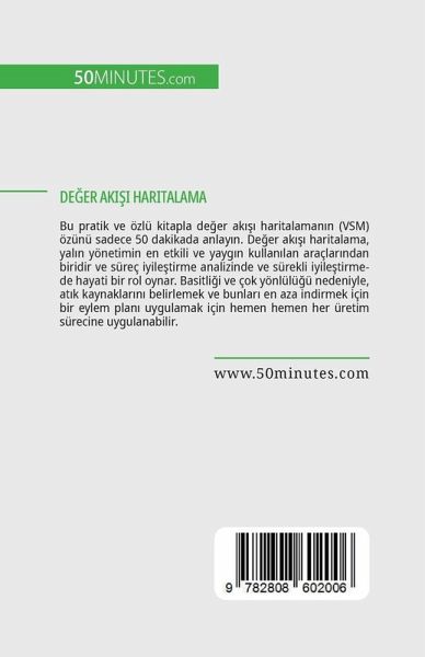 Bu pratik ve özlü kitapla de¿er ak¿¿¿ haritalaman¿n (VSM) özünü sadece 50 dakikada anlay¿n. De¿er ak¿¿¿ haritalama, yal¿n yönetimin en etkili ve yayg¿n kullan¿lan araçlar¿ndan biridir ve süreç iyile¿tirme analizinde ve sürekli iyile¿tirmede hayati bir rol oynar. Basitli¿i ve çok yönlülü¿ü nedeniyle, at¿k kaynaklar¿n¿ belirlemek ve bunlar¿ en aza indirmek için bir eylem plan¿ uygulamak için hemen hemen her üretim sürecine uygulanabilir. Bu kitap size VSM'nin de¿er yaratmadaki rolüne ili¿kin kullan¿¿l¿ bir giri¿ sunmaktad¿r. Yaln¿zca kendi malzeme ve bilgi ak¿¿¿ haritan¿z¿ nas¿l olu¿turacä¿n¿z¿ de¿il, ayn¿ zamanda pratik bir vaka çal¿¿mas¿n¿ nas¿l inceleyece¿inizi, insani ve organizasyonel konular¿ dikkate almamas¿ da dahil olmak üzere arac¿n eksikliklerinin neler oldu¿unu ö¿renecek ve DMAIC yöntemi ve Kaizen gibi ilgili modelleri ke¿fedeceksiniz. De¿er ak¿¿¿ haritalama hakk¿nda : De¿er ak¿¿¿ haritalama (VSM), kullan¿c¿lar¿n ¿irketlerinin üretim süreçlerine görsel bir genel bak¿¿ elde etmelerini sälayan, zaman ve çaban¿n nerede bo¿a harcand¿¿¿n¿ görmeyi ve üretimi kolaylät¿rmak için ad¿mlar atmay¿ kolaylät¿ran bir araçt¿r. Standartlät¿r¿lm¿¿ simgelerin kullan¿m¿ departmanlar aras¿ndaki ileti¿imi kolaylät¿r¿r ve kullan¿c¿lar¿n mevcut durumlar¿n¿ ideal üretim süreçleriyle kar¿¿lät¿rmalar¿na olanak tan¿r. Bu kitapta, de¿er ak¿¿¿ haritalaman¿n i¿letmenize nas¿l yard¿mc¿ olabilece¿ini ke¿fedecek, kendi üretim ve bilgi ak¿¿¿ haritan¿z¿ nas¿l olu¿turacä¿n¿z¿ ö¿renecek ve bulgular¿n¿z¿ at¿k kaynaklar¿n¿ belirlemek ve ortadan kald¿rmak için kullanacaks¿n¿z. Yöntemin avantajlar¿n¿n ve olas¿ dezavantajlar¿n¿n net bir ¿ekilde aç¿klanmas¿, pratik bir vaka çal¿¿mas¿n¿n tart¿¿¿lmas¿ ve ilgili modellere giri¿ yap¿lmas¿, yaklä¿m¿n¿z¿ durumunuza göre uyarlaman¿z için gereken araçlar¿ sälar.