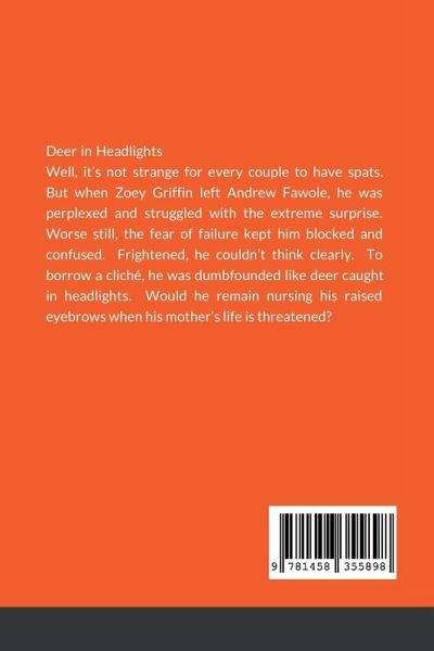 Deer in Headlights Well, it's not strange for every couple to have spats. But when Zoey Griffin left Andrew Fawole, he was perplexed and struggled with the extreme surprise. Worse still, the fear of failure kept him blocked and confused. Frightened, he couldn't think clearly. To borrow a cliché, he was dumbfounded like deer caught in headlights. Would he remain nursing his raised eyebrows when his mother's life is threatened?