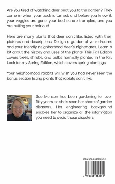 Are you tired of looking out your kitchen window and seeing Bambi eating your garden, acting like it's his own salad bar? Do they wreck what they don't eat, so your garden looks like a wreck? In this book, you will discover: Various methods to protect your garden from deer and rabbits Which plants deer find unappealing and why What plants are best for your soil type How much sun each plant requires When each plant blooms and what color the flowers are Which plants are susceptible to pests Height and width range of each plant How to plan your garden to make it unappetizing to deer but still beautiful and nutritious for you and your family This Fall Planting Edition covers trees, shrubs, and bulbs normally planted in the fall. For flowers, non-flowering shrubs, and herbs normally planted in the spring, see the companion book, Deer-Resistant Gardening in the Midwest; Spring Planting Edition. The friendly neighborhood deer will find your yard too much trouble or not very appetizing and decide to visit your neighbor's yard instead. So simple, even someone who has never had a garden before can do it! Special Bonus Section will list plants repellent to rabbits!