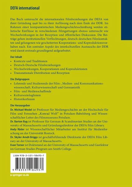 Das Buch untersucht die internationalen Filmbeziehungen der DEFA von ihrer Gründung 1946 bis zu ihrer Auflösung nach dem Ende der DDR. Im Rahmen einer komparatistischen Mediengeschichtsschreibung werden stilistische Einflüsse in verschiedenen Filmgattungen ebenso untersucht wie Wechselwirkungen in der Rezeption und öffentlichen Diskussion. Die Beiträge gehen institutionellen Verflechtungen, deutsch-deutschen Filmkontakten und gelungenen wie gescheiterten Kooperations- und Koproduktionsvorhaben nach. Ein zentraler Aspekt des interkulturellen Austauschs der DDR wird damit erstmals grundlegend aufgearbeitet.