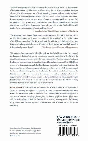 Daniel Branch is currently an Assistant Professor in African History at the University of Warwick. Previously, he taught at the University of Exeter and was a Fellow of the Macmillan Center for International and Area Studies at Yale University. His articles have appeared in a number of journals, including African Affairs, The Journal of African History, Africa Today, and the Review of African Political Economy. He is currently working on two forthcoming book projects and co-editing (with Nicholas Cheeseman) a volume on Kenyan politics since 1950.