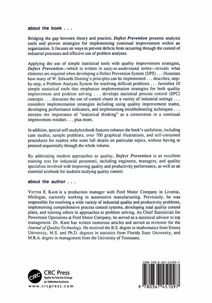 This book discusses statistical process control (SPC) concepts, emphasizing the need to establish stability of work processes. It gives the elements required to develop a defect prevention system (DPS), and integrates the application of process control and problem analysis tools.
