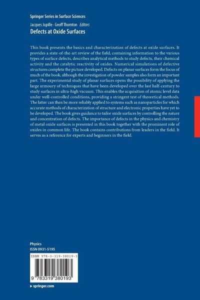 This book presents the basics and characterization of defects at oxide surfaces. It provides a state-of-the-art review of the field, containing information to the various types of surface defects, describes analytical methods to study defects, their chemical activity and the catalytic reactivity of oxides. Numerical simulations of defective structures complete the picture developed. Defects on planar surfaces form the focus of much of the book, although the investigation of powder samples also form an important part. The experimental study of planar surfaces opens the possibility of applying the large armoury of techniques that have been developed over the last half-century to study surfaces in ultra-high vacuum. This enables the acquisition of atomic level data under well-controlled conditions, providing a stringent test of theoretical methods. The latter can then be more reliably applied to systems such as nanoparticles for which accurate methods of characterization of structure and electronic properties have yet to be developed. The book gives guidance to tailor oxide surfaces by controlling the nature and concentration of defects. The importance of defects in the physics and chemistry of metal oxide surfaces is presented in this book together with the prominent role of oxides in common life. The book contains contributions from leaders in the field. It serves as a reference for experts and beginners in the field.