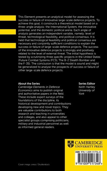 This Element presents an analytical model for assessing the success or failure of innovative large-scale defence projects. To achieve this goal, it constructs a theoretical model based on a three-angle analysis: the International System, the innovative potential, and the domestic political arena. Each angle of analysis generates an independent variable, namely: level of threat, technological feasibility, and political consensus. It is held that technological feasibility and political consensus are necessary and conjointly sufficient conditions to explain the success or failure of large-scale defence projects. The success of the innovative defence projects is strongly and positively related to the level of external threat. The initial hypothesis is tested by scrutinizing three specific projects in the United States (Future Combat Systems, The B-2 Stealth Bomber and the F-35). The conclusion is that the model is sound and might be generalized to analyse the prospects of success or failure of other large-scale defence projects.