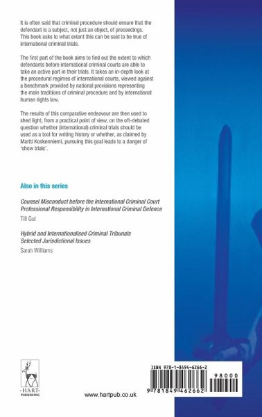 It is often said that criminal procedure should ensure that the defendant is a subject, not just an object, of proceedings. This book asks to what extent this can be said to be true of international criminal trials. The first part of the book aims to find out the extent to which defendants before international criminal courts are able to take an active part in their trials. It takes an in-depth look at the procedural regimes of international courts, viewed against a benchmark provided by national provisions representing the main traditions of criminal procedure and by international human rights law. The results of this comparative endeavour are then used to shed light, from a practical point of view, on the oft-debated question whether (international) criminal trials should be used as a tool for writing history or whether, as claimed by Martti Koskenniemi, pursuing this goal leads to a danger of "show trials".
