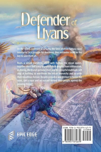(Black and White Interior Edition) On the island continent of La'Suna, the fates of three fantasy races intertwine in a struggle for dominion. One outlander could be the key to save them all. Roan, a verum wanderer, allied with Karaya, the mican queen, together must find a way to protect their peoples from obliteration, as Amrog, the brutal gorbane chief, and his vengeful multitude will stop at nothing to overthrow the mican monarchy and re-unite their bloodlines forever. Despite prejudice and distrust between the races, can a royal and an outcast defend their people against the growing threat?