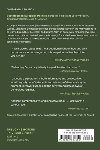 How does an established democracy deal with threats to its stability and continued existence when those threats come from legitimate political parties within the system? In Defending Democracy, political scientist Giovanni Capoccia studies key European nations between World Wars I and II which survived such democratic crises. He offers case studies of Czechoslovakia, Belgium, and Finland as success stories, as well as analyzes the two most well-known cases of European democratic breakdown-Germany and Italty. Capoccia alerts the reader to the need for continuing research on defending democracy and points out the rise of terrorism and the persistence of extremism among political parties not only in stable democracies but also the new democracies of the Soviet Union.