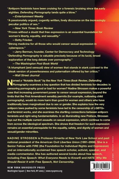 A new edition of a groundbreaking, feminist defense of pornography as free speech Named a Notable Book by The New York Times Book Review in 1995, Defending Pornography examines a key question that has divided feminists for decades: is censoring pornography good or bad for women? Nadine Strossen makes a powerful case that increasing government power to censor sexual expression, beyond the limits that the First Amendment sensibly permits (for example, outlawing child pornography) would do more harm than good for women and others who have traditionally been marginalized due to sex or gender, She explains how the very anti-porn laws pushed by some feminists have led to the censorship of LGBTQ+ and feminist works, and she examines the startling connections between anti-porn feminists and right-wing fundamentalists. In an illuminating new Preface, Strossen lays out the multiple current assaults on sexual expression, which continue to come from across the ideological spectrum. She shows that freedom for such expression remains an essential prerequisite for the equality, safety, and dignity of women and sexual/gender minorities.