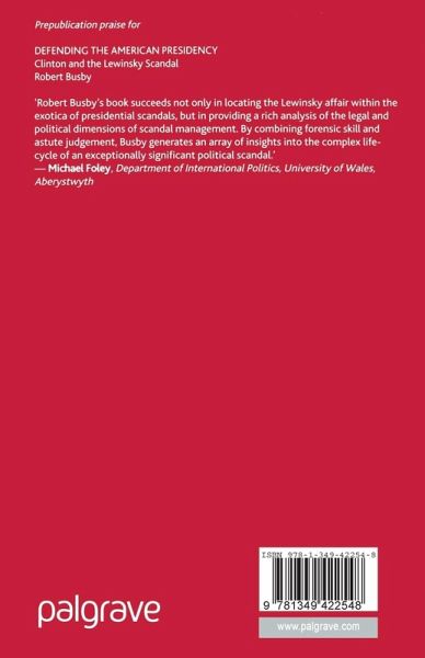 The Lewinsky scandal provided President Clinton with a stern challenge to his political credibility in 1998-99. Having endured an investigation by an Independent Counsel, the President was impeached and only just retained the presidential office following a trial in the Senate. Robert Busby identifies and analyzes the damage limitation strategies adopted by the Clinton administration to contend with the Lewinsky scandal, and explains how and why Clinton survived the most serious Constitutional crisis since Watergate.