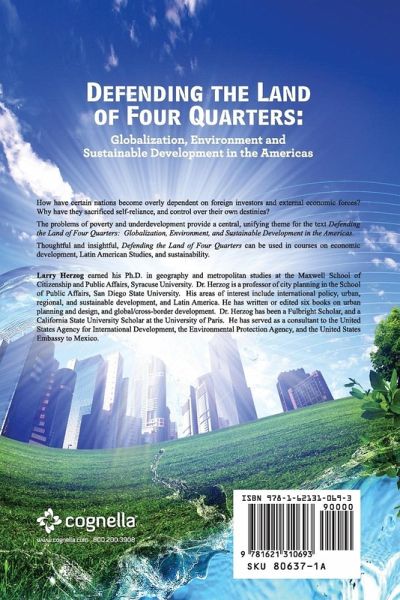 How have certain nations become overly dependent on foreign investors and external economic forces? Why have they sacrificed self-reliance, and control over their own destinies? The problems of poverty and underdevelopment provide a central, unifying theme for the text Defending the Land of Four Quarters: Globalization, Environment, and Sustainable Development in the Americas. The book explores and reviews a set of themes associated with the transformation of social and physical environments, and reviews important streams of knowledge about sustainable development using specific examples from Mexico and South America. Topics covered include: Rethinking Development Sustainability, Nature, and Local Culture Nature and Cities Globalization, Design, and the Environmental Impacts of Tourism Sustainability and Regional Development: The Case of Peru Sustainable Cities Sustainable Policy-Making The selected readings discuss models for moving past poverty, dependence, and exploitation, and explore pathways to sustainable development¿economic and social growth that respects local and regional culture. Thoughtful and insightful, Defending the Land of Four Quarters can be used in courses on economic development, Latin American Studies, and sustainability. Larry Herzog earned his Ph.D. in geography and metropolitan studies at the Maxwell School of Citizenship and Public Affairs, Syracuse University. Dr. Herzog is a professor of city planning in the School of Public Affairs, San Diego State University. His areas of interest include international policy, urban, regional, and sustainable development, and Latin America. He has written or edited six books on urban planning and design, and global/cross-border development. Dr. Herzog has been a Fulbright Scholar, and a California State University Scholar at the University of Paris. He has served as a consultant to the United States Agency for International Development, the Environmental Protection Agency, and the United States Embassy to Mexico.
