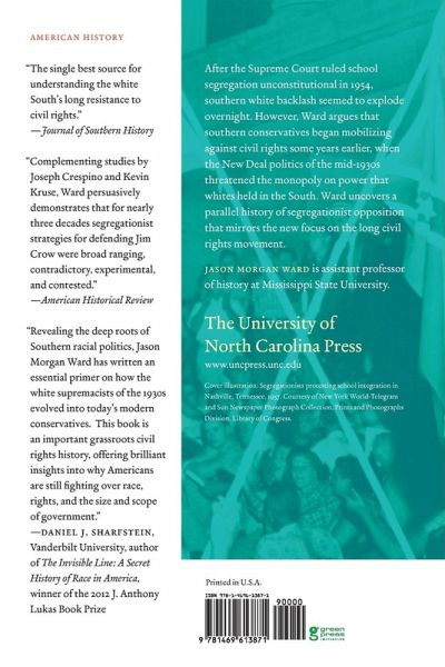 After the Supreme Court ruled school segregation unconstitutional in 1954, southern white backlash seemed to explode overnight. Journalists profiled the rise of a segregationist movement committed to preserving the “southern way of life” through a campaign of massive resistance. In Defending White Democracy, Jason Morgan Ward reconsiders the origins of this white resistance, arguing that southern conservatives began mobilizing against civil rights some years earlier, in the era before World War II, when the New Deal politics of the mid-1930s threatened the monopoly on power that whites held in the South. As Ward shows, years before “segregationist” became a badge of honor for civil rights opponents, many white southerners resisted racial change at every turn — launching a preemptive campaign aimed at preserving a social order that they saw as under siege. By the time of the Brown decision, segregationists had amassed an arsenal of tested tactics and arguments to deploy against the civil rights movement in the coming battles. Connecting the racial controversies of the New Deal era to the more familiar confrontations of the 1950s and 1960s, Ward uncovers a parallel history of segregationist opposition that mirrors the new focus on the long civil rights movement and raises troubling questions about the enduring influence of segregation’s defenders.
