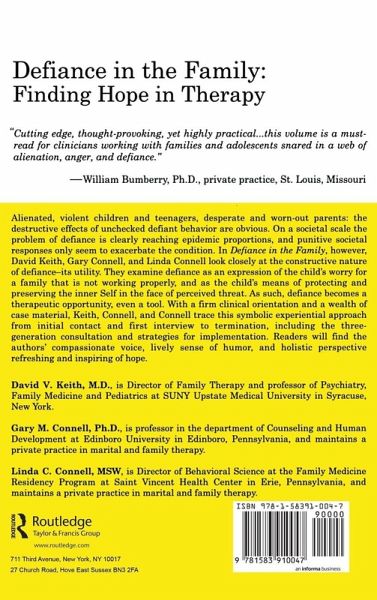 Alienated and violent children and adolescents, desperate and exhausted parents: the destructive effects of unchecked defiant behaviour are obvious. This book examines defiance as an expression of the child's worry for a malfunctioning family and trace a symbolic experiential approach.