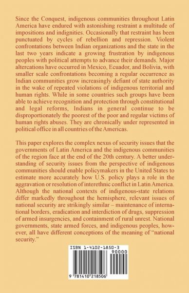 Since the Conquest, indigenous communities throughout Latin America have endured with astonishing restraint a multitude of impositions and indignities. Occasionally that restraint has been punctuated by cycles of rebellion and repression. Violent confrontations between Indian organizations and the state in the last two years indicate a growing frustration by indigenous peoples with political attempts to advance their demands. Major altercations have occurred in Mexico, Ecuador, and Bolivia, with smaller scale confrontations becoming a regular occurrence as Indian communities grow increasingly defiant of state authority in the wake of repeated violations of indigenous territorial and human rights. While in some countries such groups have been able to achieve recognition and protection through constitutional and legal reforms, Indians in general continue to be disproportionately the poorest of the poor and regular victims of human rights abuses. They are chronically under represented in political office in all countries of the Americas. This paper explores the complex nexus of security issues that the governments of Latin America and the indigenous communities of the region face at the end of the 20th century. A better understanding of security issues from the perspective of indigenous communities should enable policymakers in the United States to estimate more accurately how U.S. policy plays a role in the aggravation or resolution of interethnic conflict in Latin America. Although the national contexts of indigenous-state relations differ markedly throughout the hemisphere, relevant issues of national security are strikingly similar -- maintenance of international borders, eradication and interdiction of drugs, suppression of armed insurgencies, and containment of rural unrest. National governments, state armed forces, and indigenous peoples, however, all have different conceptions of the meaning of "national security."