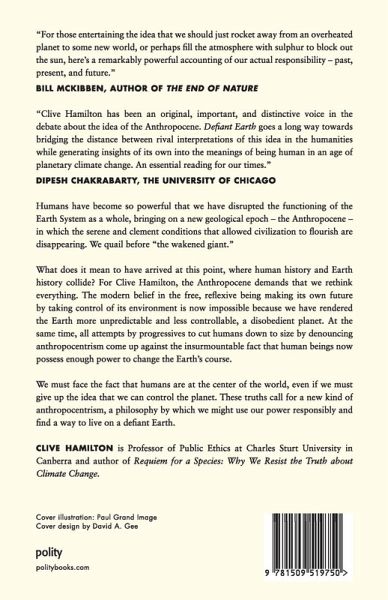 "Defiant Earth is a major contribution to a topic that is of vital if not pre-eminent importance today. The book is highly original in its synthesis of the scientific, philosophical and religious issues raised by the coming of the 'Anthropocene.' Hamilton mines each of these traditions for ways to make sense of the new and frightening epoch that is upon us." - Adrian Wilding, University of Jena, Germany