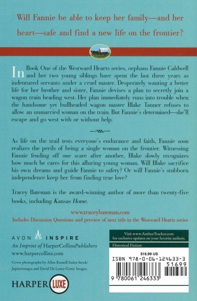 In Book One of the Westward Hearts series, orphans Fannie Caldwell and her two young siblings have spent the last three years as indentured servants under a cruel master. Desperately wanting a better life for her brother and sister, Fannie devises a plan to secretly join a wagon train heading west. Her plan immediately runs into trouble when the handsome yet bullheaded wagon master Blake Tanner refuses to allow an unmarried woman on the train. But Fannie's determined--she'll escape and go west with or without help. As life on the trail tests everyone's endurance and faith, Fannie soon realizes the perils of being a single woman on the frontier. Witnessing Fannie fending off one scare after another, Blake slowly recognizes how much he cares for this alluring young woman. Will Blake sacrifice his own dreams and guide Fannie to safety? Or will Fannie's stubborn independence keep her from finding true love?