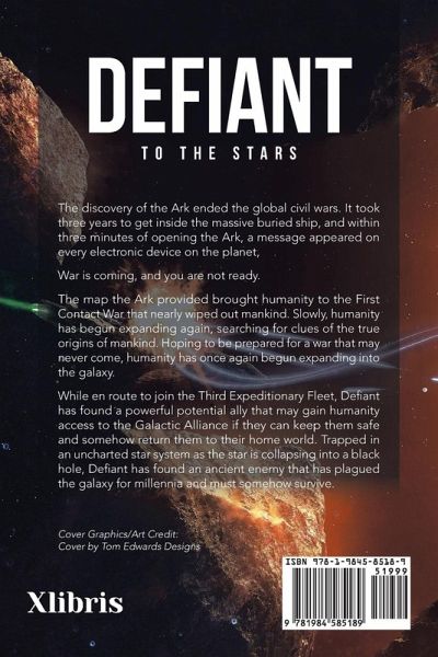 The discovery of the Ark ended the global civil wars. It took three years to get inside the massive buried ship, and within three minutes of opening the Ark, a message appeared on every electronic device on the planet, War is coming, and you are not ready. The map the Ark provided brought humanity to the First Contact War that nearly wiped out mankind. Slowly, humanity has begun expanding again, searching for clues of the true origins of mankind. Hoping to be prepared for a war that may never come, humanity has once again begun expanding into the galaxy. While en route to join the Third Expeditionary Fleet, Defiant has found a powerful potential ally that may gain humanity access to the Galactic Alliance if they can keep them safe and somehow return them to their home world. Trapped in an uncharted star system as the star is collapsing into a black hole, Defiant has found an ancient enemy that has plagued the galaxy for millennia and must somehow survive.