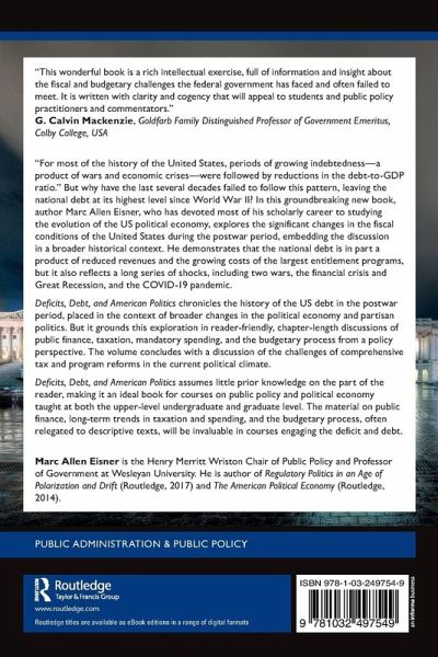 "For most of the history of the United States, periods of growing indebtedness-a product of wars and economic crises-were followed by reductions in the debt-to-GDP ratio." But why have the last several decades failed to follow this pattern, leaving the national debt at its highest level since World War II? In this groundbreaking new book, author Marc Allen Eisner, who has devoted most of his scholarly career to studying the evolution of the US political economy, explores the significant changes in the fiscal conditions of the United States during the postwar period, embedding the discussion in a broader historical context. He demonstrates that the national debt is in part a product of reduced revenues and the growing costs of the largest entitlement programs, but it also reflects a long series of shocks, including two wars, the financial crisis and Great Recession, and the COVID-19 pandemic.