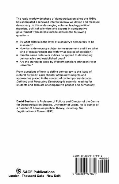 Defining and Measuring Democracy offers an integrated analysis of key debates and issues ranging from the question of how to define democracy to the issue of cultural diversity. Each chapter offers new insights and approaches placed in the context of contemporary debates.