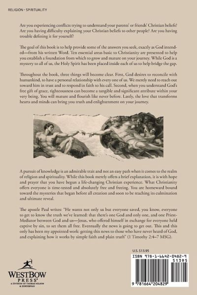 Are you experiencing conflicts trying to understand your parents' or friends' Christian beliefs? Are you having difficulty explaining your Christian beliefs to other people? Are you having trouble defining it for yourself? The goal of this book is to help provide some of the answers you seek, exactly as God intended-from his written Word. Ten essential areas basic to Christianity are presented to help you establish a foundation from which to grow and mature on your journey. While God is a mystery to all of us, the Holy Spirit has been placed inside each of us to help bridge the gap. Throughout the book, three things will become clear. First, God desires to reconcile with humankind, to have a personal relationship with every one of us. We merely need to reach out toward him in trust and to respond in faith to his call. Second, when you understand God's free gift of grace, righteousness can become a tangible and significant attribute within your very being. You will mature and flourish like never before. Lastly, the love that transforms hearts and minds can bring you truth and enlightenment on your journey.