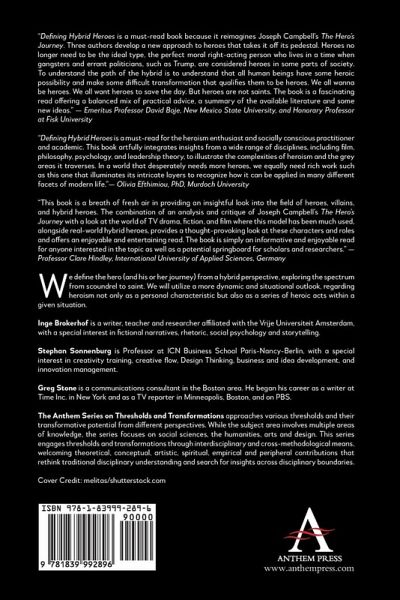 Prologue Introduction 1. The Role of Hybrid Heroes in Popular Stories and Moral Leadership By Inge Brokerhof 2. Isn't Every Heroic Person on a Hybrid Journey? Joseph Campbell Revisited By Stephan Sonnenburg 3. Hybrid Heroes in Extremis and at Work By Greg Stone 4. The Meaning of Hybrid Heroes for Individuals, Businesses, and Society: A Concluding Round-Table Discussion Index