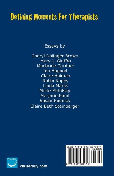 If therapy is a relational process, it takes a person on the therapist's end. The goal of this book is to capture the therapist's evolving sense of self as it is shaped by our experiences as active participants in a creative interaction. The essays of this book are first-person accounts, by eleven therapists, of some "Aha!" moments when they got to understand themselves better, and to understand better why they do what they do. Essays by: Cheryl Dolinger Brown, Mary J. Giuffra, Marianne Gunther, Lou Hagood , Claire Haiman, Robin Kappy, Linda Marks, Merle Molofsky, Marjorie Rand, Susan Rudnick, and Claire Beth Steinberger.