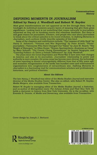 Looking back does not come easily to journalists, immersed as they are in breaking events. But there is good reason for those who practise and study journalism to consider the critical episodes in its evolution and in this collection, such authors describe in detail episodes of this kind.