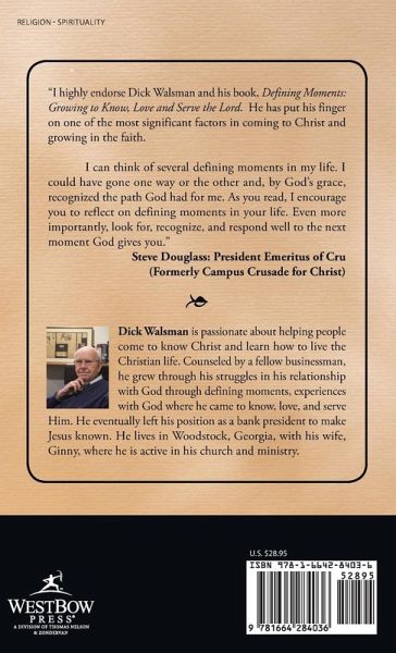 Ever wonder how to put together faith in Jesus with real life? How do God and science come together? Why can we trust God when we hardly trust others? Dick Walsman takes you on a journey through his own "Defining Moments," times when he asked questions like these to God. Step by step, he received answers and a greater understanding. He began to see a pattern that as he got to know God, he grew to love God which led to a desire to serve God. Passionate to have you glean from his years of experience, he candidly goes through life lessons and thought processes to share truths with you, in hope that you also will have "Defining Moments" with God.