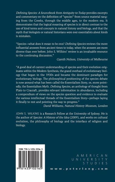 «Species - what does it mean to be one? 'Defining Species' reviews the more influential answers from ancient times to today, when the answers are more diverse than ever before. John S. Wilkins' review is an invaluable resource to the continuing discussion.» (Gareth Nelson, University of Melbourne)