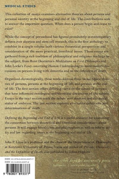 This collection of essays examines alternative theories about persons and personal identity at the beginning and end of life. The contributions seek to answer the important question, When does a person begin and cease to exist? While the concept of personhood has figured prominently in contemporary debates over abortion and stem cell research, this is the first anthology to combine in a single volume both various theoretical perspectives and consideration of the more practical, bioethical issues. These essays are gathered from a rich tradition of philosophical and religious readings on the subject, from René Descartes's Meditations on First Philosophy and John Locke's Essay concerning Human Understanding to more modern discussions on persons living with dementia and on the definition of death. Organized chronologically, these works address three broad topics: theories of persons, persons at the beginning of life, and persons at the end of life. The first section offers differing views on the nature of persons that have influenced ontological and bioethical discussions of the subject. Essays in the next section track the debate over abortion and the moral status of embryos. The last section explores alternative definitions and determinations of death. Defining the Beginning and End of Life is a useful resource for examining the connection between theoretical and bioethical considerations about persons. It will engage bioethicists and philosophers as well as inform policy and law regarding issues at the beginning and end of life.