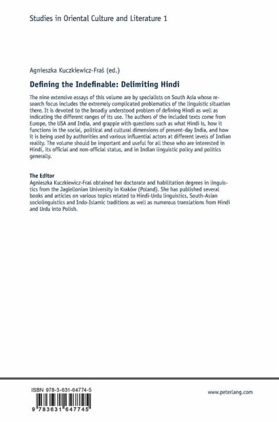 The nine extensive essays of this volume are by specialists on South Asia whose research focus includes the extremely complicated problematics of the linguistic situation there. It is devoted to the broadly understood problem of defining Hindi as well as indicating the different ranges of its use. The authors of the included texts come from Europe, the USA and India, and grapple with questions such as what Hindi is, how it functions in the social, political and cultural dimensions of present-day India, and how it is being used by authorities and various influential actors at different levels of Indian reality. The volume should be important and useful for all those who are interested in Hindi, its official and non-official status, and in Indian linguistic policy and politics generally.