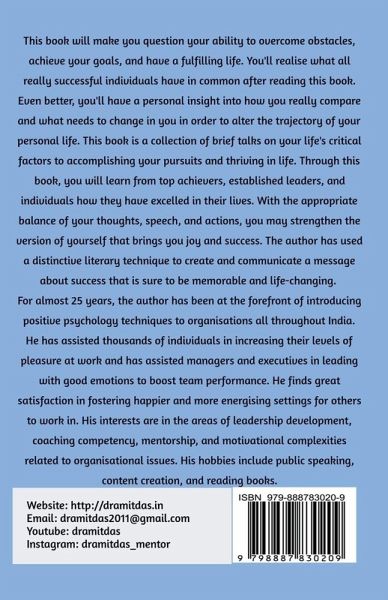 This book is for everyone who wants to learn how to improve their quality of life generally and have greater success in their lives. It is jam-packed with important basic ideas that anybody can use to improve their quality of life, presented in engrossing bits of knowledge. He discusses a variety of stressful scenarios that people encounter on a regular basis. such as long-term illness, losing a loved one, being unemployed, and other frightful circumstances that might obstruct a person's path to achievement.This brief study aims to assist you in identifying and fostering each of these success characteristics in your own personal life so that you may start to advance and win over people. This book offers tried-and-true methods for developing self-control so you may transform your life and accomplish any objective you set for yourself.